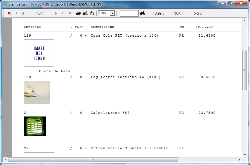 Nel caso in cui la formula non riporta un immagine valida (nel percorso), oppure non supportata dal motore di stampa CR 2008 (nel tipo) verrà visualizzata l'immagine di default.