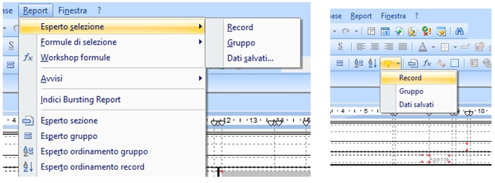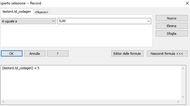 Record (Record Selection) Questa funzione limita o restringe la selezione di record che saranno inclusi nel report.