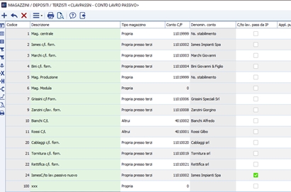Si attiva per singolo magazzino, quindi possono convivere terzisti con gestione "classica" e terzisti con gestione da impegni di produzione: Tabella dei magazzini (1-K-F)