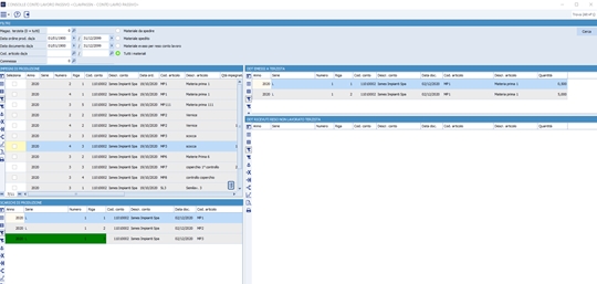 Nel menù di riga è presente la nuova funzione «Conto lavoro pass. Da imp. Di prod.» presente su ddt emessi e ricevuti con mag. di scarico in testata che abbia il nuovo flag attivo. La funzione ha le seguenti scelte: • "Zoom righe imp. prod. assegnate: Propone le righe impegni di produzione con stesso conto intestatario/valuta/scorporo del ddt ricevuto, che abbiano quantità assegnata maggiore di 0 e quantità evasa inferiore a quantità impegnata. • "Assegna riga": la funzione controlla che il magazzino di scarico di riga (mm_magaz2) abbia la gestione del conto lavoro passivo di I.P. Mostra lo "Zoom righe da assegnate" in cui potrà essere selezionata una sola riga i cui riferimenti verranno riportati nella riga del ddt su cui si è posizionati. • "Libera riga": ": la funzione controlla che il magazzino di scarico di riga (mm_magaz2) abbia la gestione del conto lavoro passivo di I.P. Resetta i riferimenti alla riga di I.P. Al salvataggio di un documento di magazzino (SENZA alcun filtro sul tipo documento) il programma controlla che: • se il magazzino di riga 2 ha attiva la gestione del conto lavoro passivo da I.P., la causale 2 di riga NON abbia la gestione dei riferimenti ddt di conto lavoro. Se anche solo una riga del corpo NON soddisfa questa caratteristica, viene impedito il salvataggio. Inoltre, salvando un ddt emesso o un ddt ricevuto, si controlla che: • per ogni riga il cui magazzino 2 abbia la gestione del c/lavoro da I.P. che abbia valorizzati i riferimenti alla riga di I.P. • Che la quantità totale assegnata sia superiore a quella impegnata; in caso anche solo una riga non soddisfi questa caratteristica, il programma avvisa o blocca il salvataggio a seconda del valore della nuova opzione di registro BSVEBOLL\OPZIONI\Ipcl_BloccaSalvataggio: ○ -2 = avvisa solamente ○ -1 = blocca, richiedendo una password per sbloccare il salvataggio e proseguire ugualmente; la password viene indicata nell'opzione BSVEBOLL\OPZIONI\Ipcl_PwdSbloccaSalvataggio, di default valorizzata con "nts" ○ 0 = non effettua i controlli sulla quadratura dei totali "Consolle conto lavoro passivo" (BNMGGCLP)