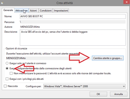 SBS lanciato in esecuzione automatica all'avvio del sistema (da operazioni pianificate)