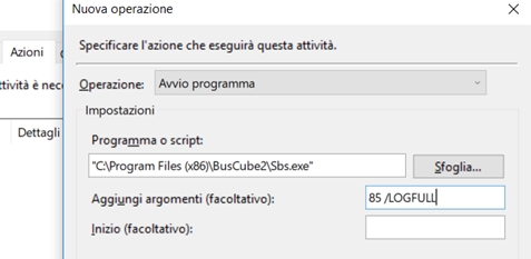• /NOSTART si può disabilitare la partenza in automatico del servizio (esempio: C:\programmi\bus\sbs64.exe 85 /NOSTART )