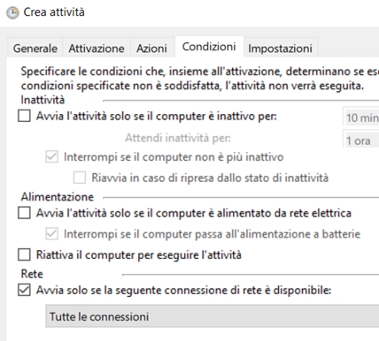Nelle Condizioni, togliamo le spunte sull'alimentazione.