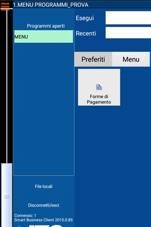 Oltre al menu che replica quello di Business, in alto a destra abbiamo accesso ad un menu a tendina, da dove è possibile richiamare alcune utili funzioni come ad esempio il Registro di Business e la Versione del Programma.
