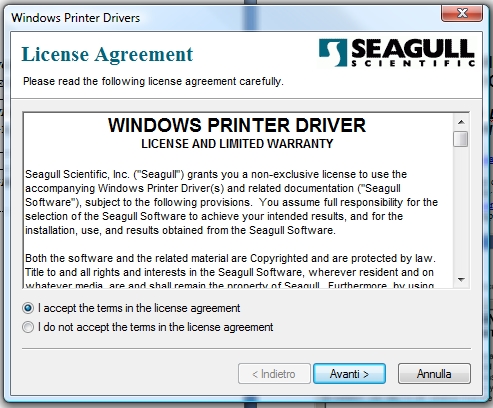 1) Selezionare all'interno della Lista il file "Zebra" (ftp://ftp.seagullscientific.com/drivers/archive/7.1/7.1.6/Zebra_7.1.6.exe) ed eseguire la procedura.