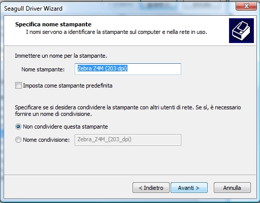 Selezionare la seguente stampante e procedere: