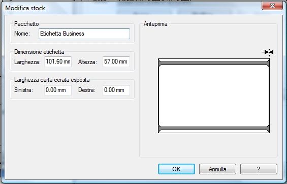 Impostare un formato carta Personalizzato Business con Etichetta 10,1 cm x 5,6 cm