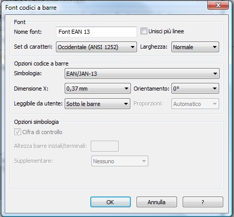 Impostare un Font Particolare per Barcode EAN 13.
