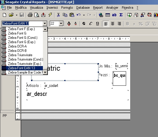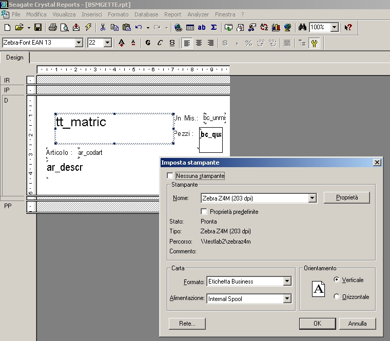 CREAZIONE REPORT ETICHETTE BARCODE EAN 13 CON FONT PROPRIETARI ZEBRA Z4M