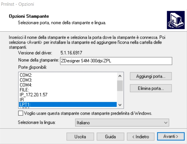 - lanciare il programma, richiederà di aggiungere il driver della stampante con procedura guidata: