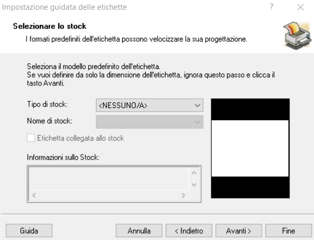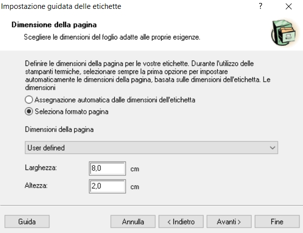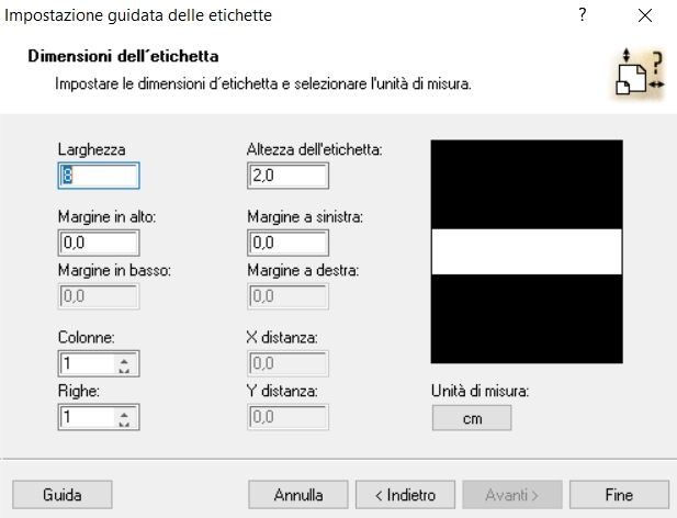 Nel nostro caso l'etichetta è 8 cm di larghezza e 2 di altezza: