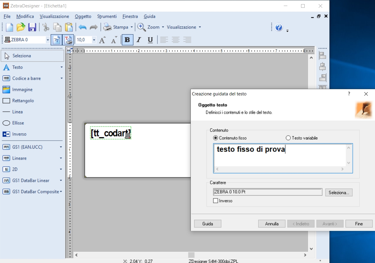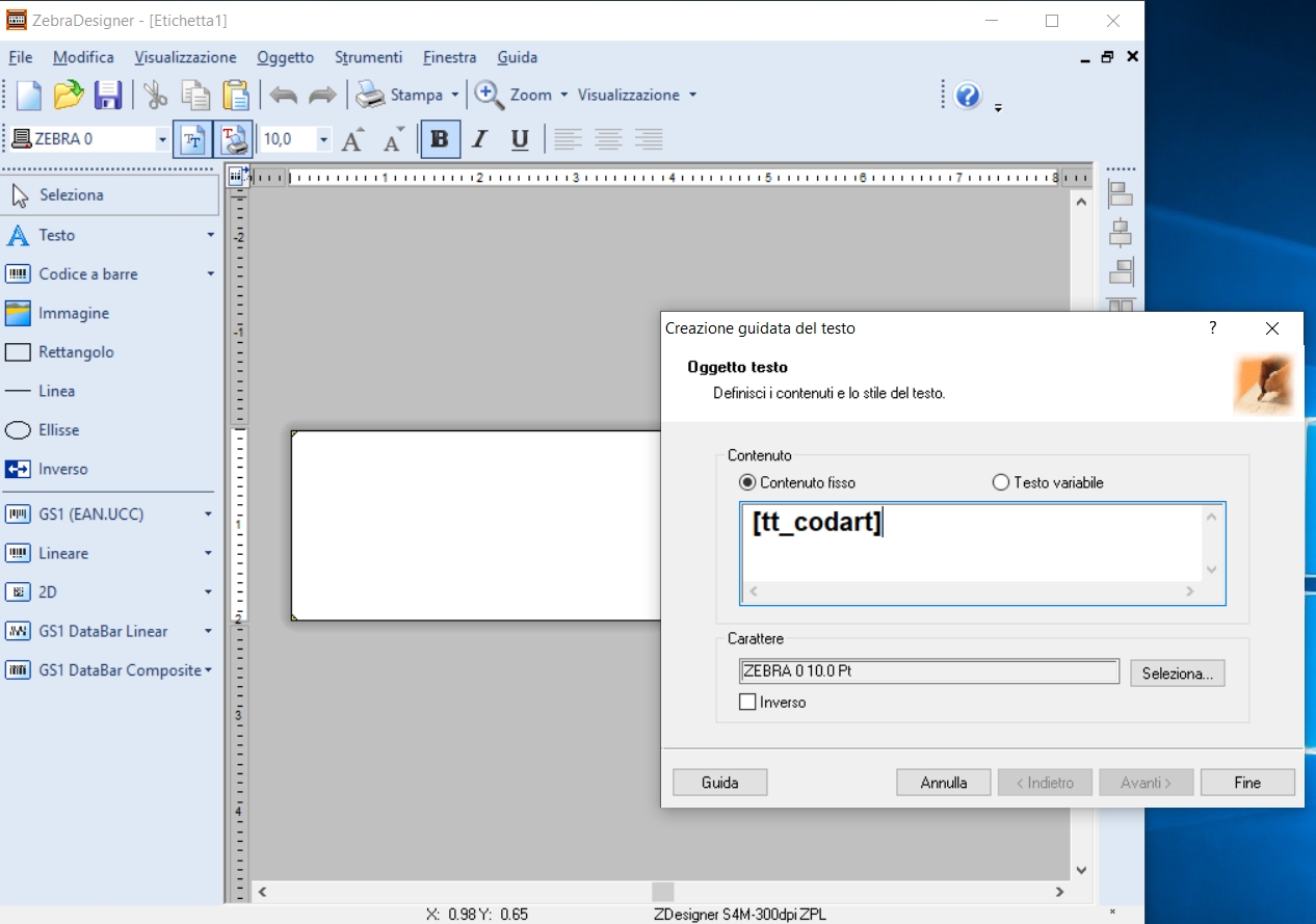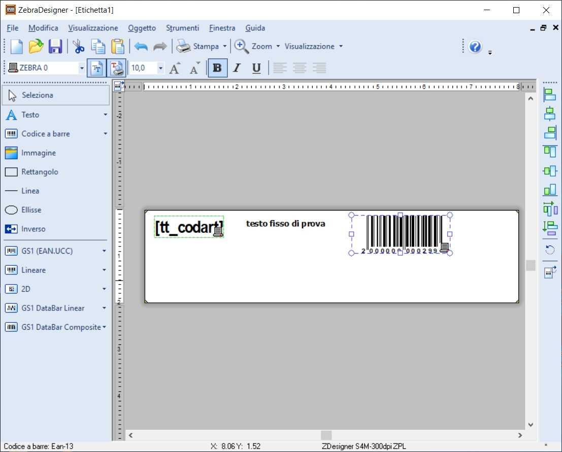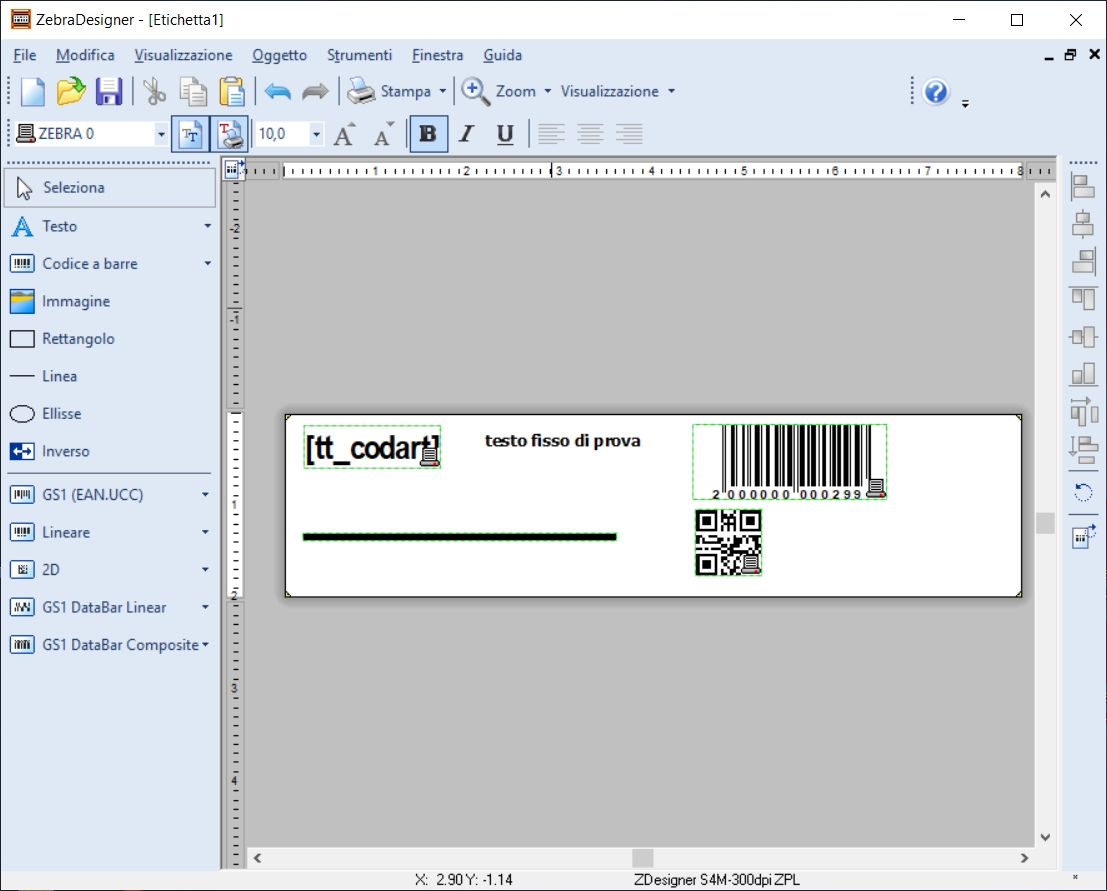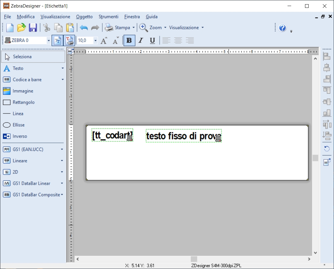 - Da ZebraDesigner creare la nuova etichetta, a seguito un esempio:
