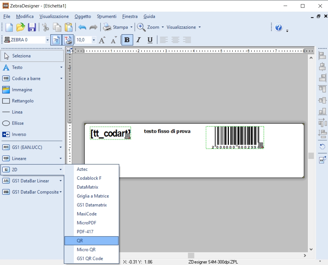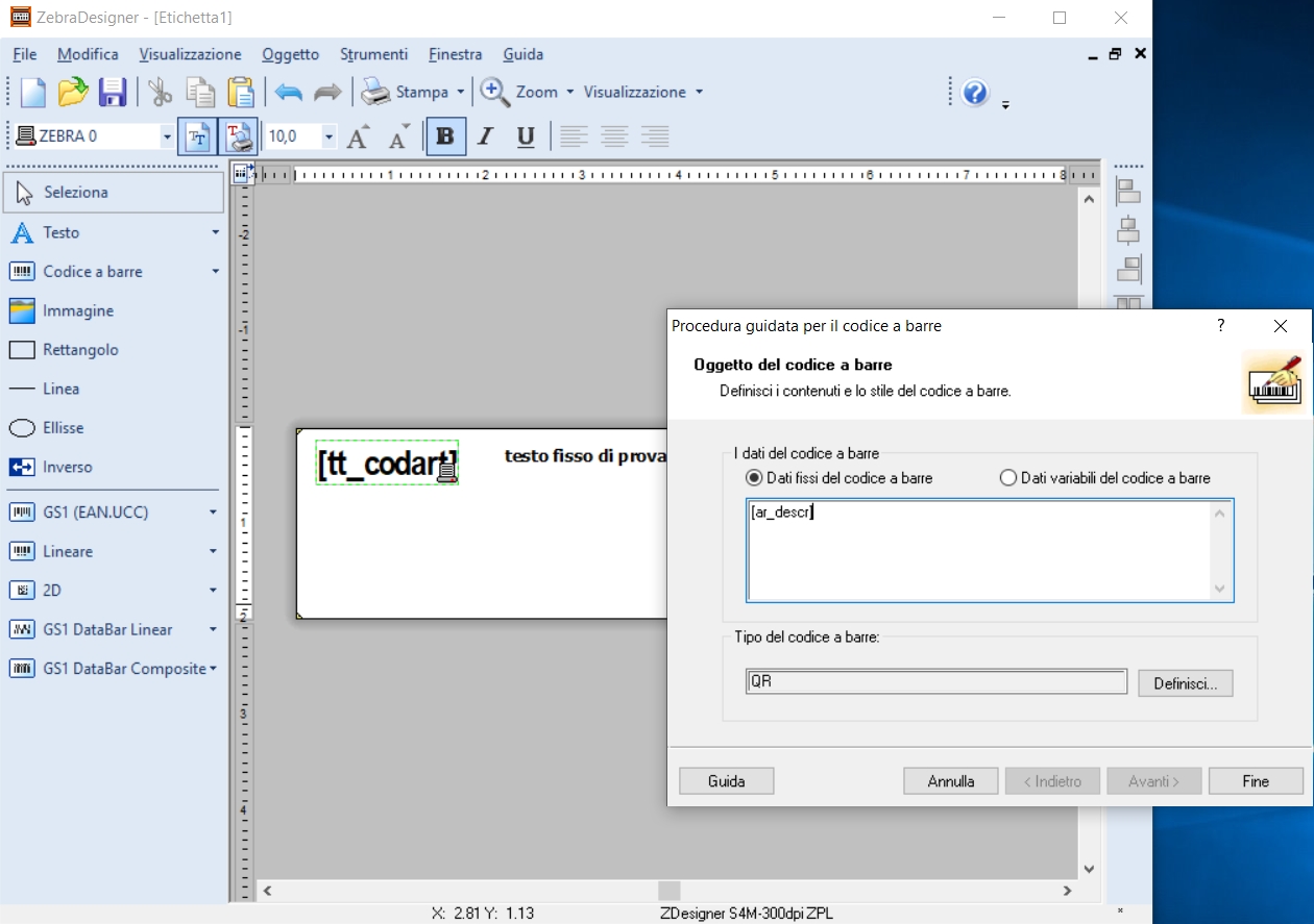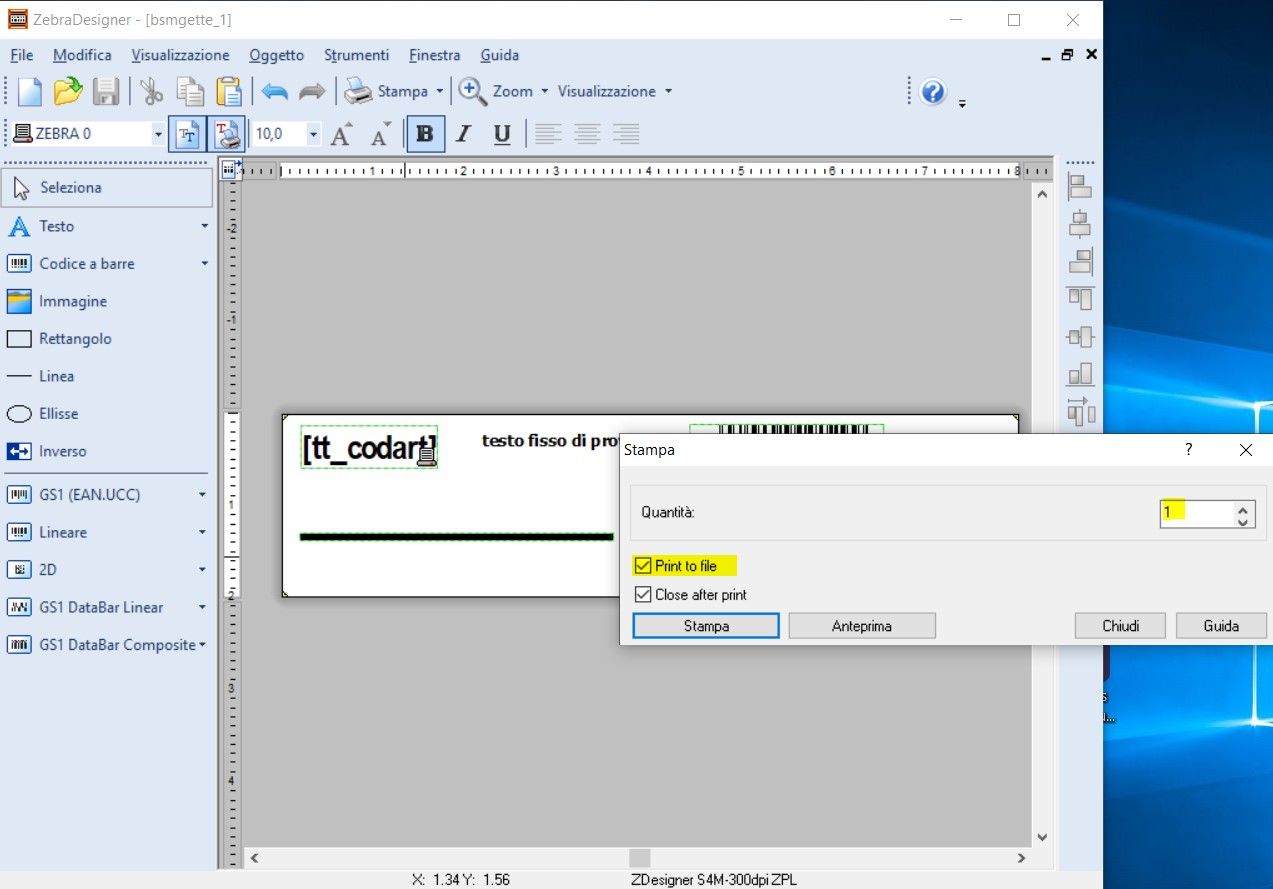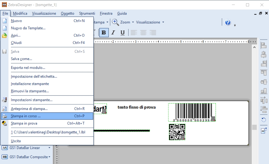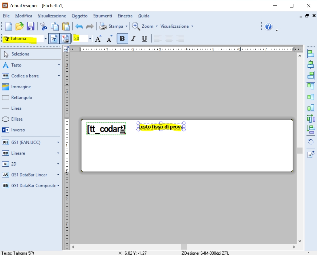 - Da ZebraDesigner creare la nuova etichetta, a seguito un esempio: