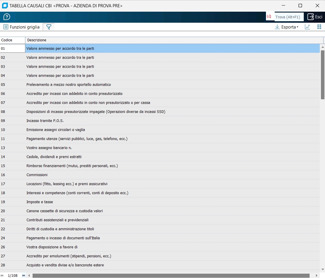 Tabella Causali CBI
