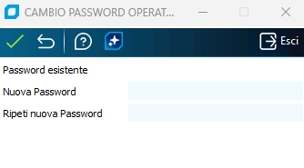 Con il seguente programma l'operatore puņ effettuare il cambio della password, se indicato in Gestione operatori dalla casella 'Consenti modifica password'.