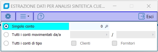 Estrazione dati Analisi Sintetica clienti/fornitori | |||