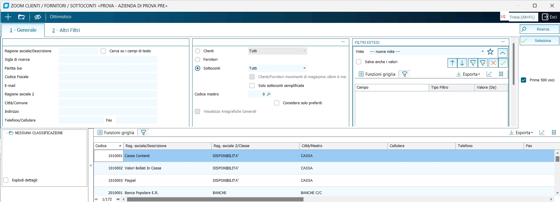 Zoom clienti/fornitori/sottoconti