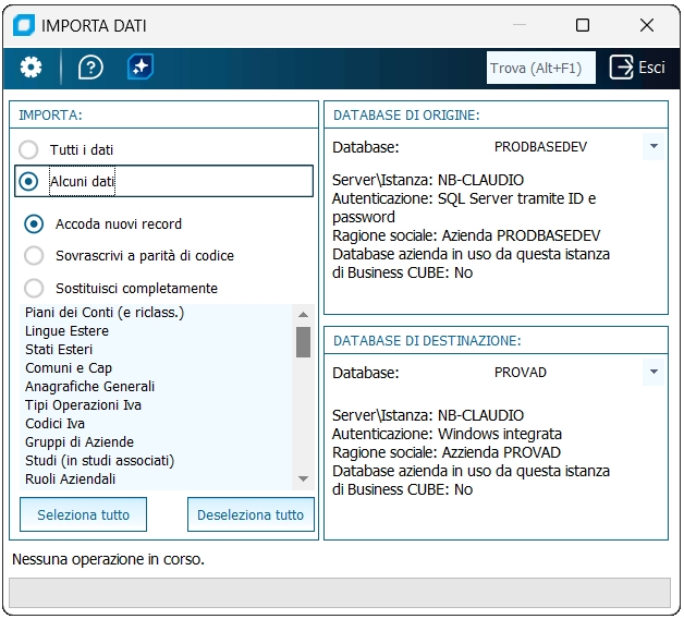 Importa dati da altro database | |||