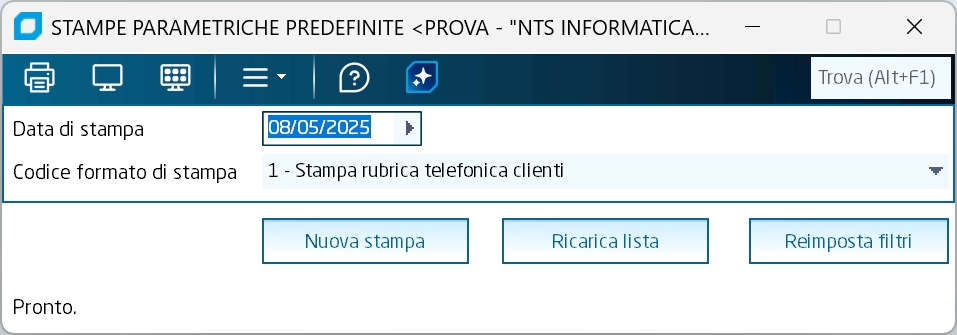 Nuova Stampa Consente di accedere al programma Impostazione Stampe Parametriche Predefinite.