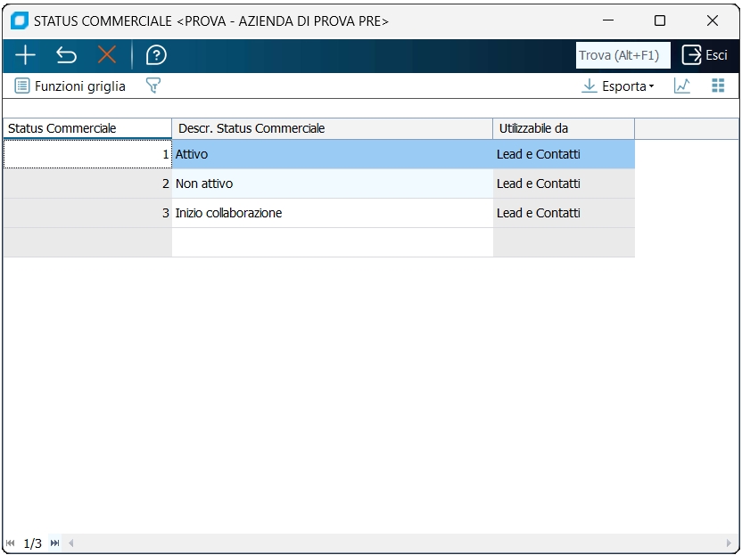 Tramite questo programma è possibile definire un elenco di status commerciali da usare poi in gestione lead o in rubrica o in entrami i programmi.