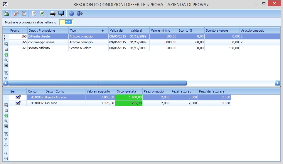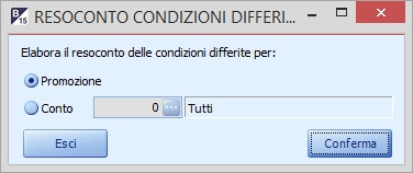 NB: In caso una promozione non sia mai stata applicata, occorre filtrare il resoconto per promozione poichè se filtrato per conto il ricalcolo verrà fatto solo se la promozione è stata applicata almento una volta sul documento