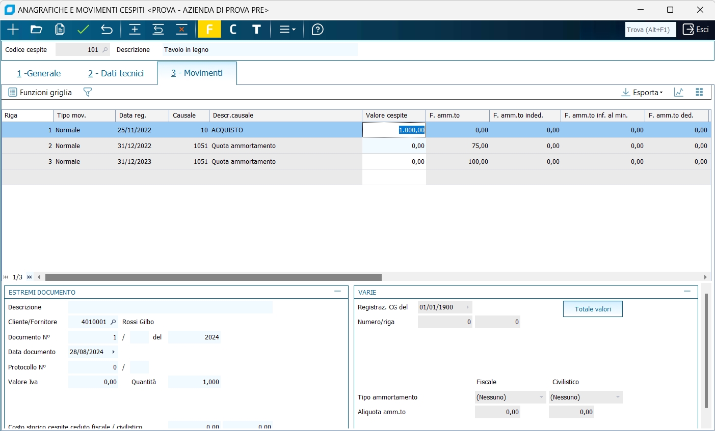 Anagrafiche e Movimenti Cespiti | |||