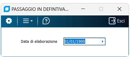 Questo programma trasforma i movimenti provvisori, generati da "Calcola ammortamenti" sulle schede cespiti della ditta corrente, in ammortamenti definitivi, e relative plus- o minusvalenze. Alla fine dell'elaborazione il programma aggiorna la Data ultimo calcolo ammortamenti in Anagrafica ditta, così come se fosse stato eseguito il calcolo ammortamenti in definitivo dall'apposito programma.