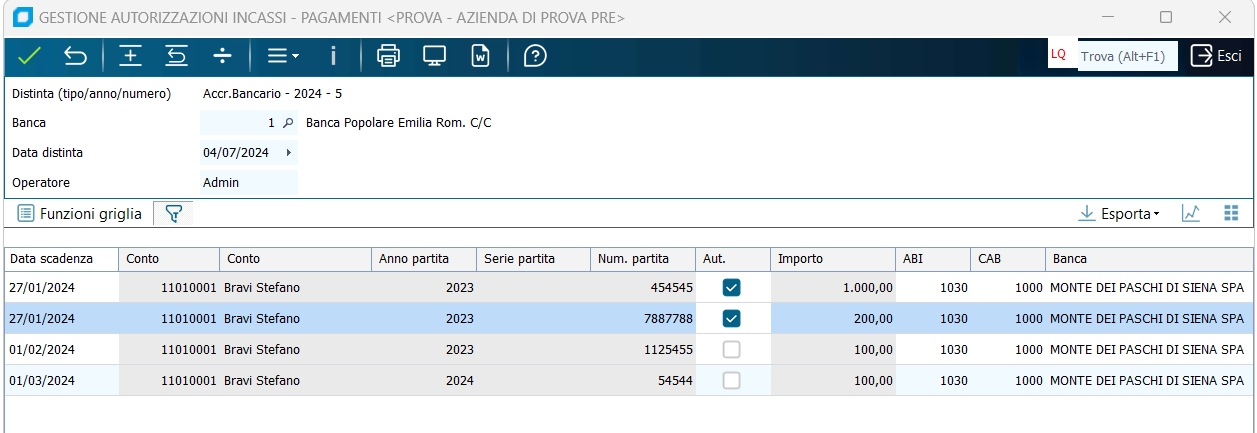 Autorizzato Spuntare se la scadenza in quella riga va autorizzata; lasciare non spuntata in caso non debba essere autorizzata.