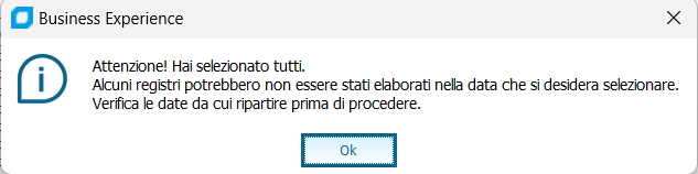 Selezionando una chiusura da cui ripartire, lanciando l'elaborazione, il programma avvisa con il messaggio: