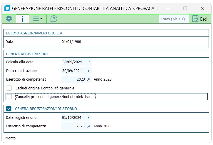 Generazione Ratei - Risconti di Contabilità Analitica | |||