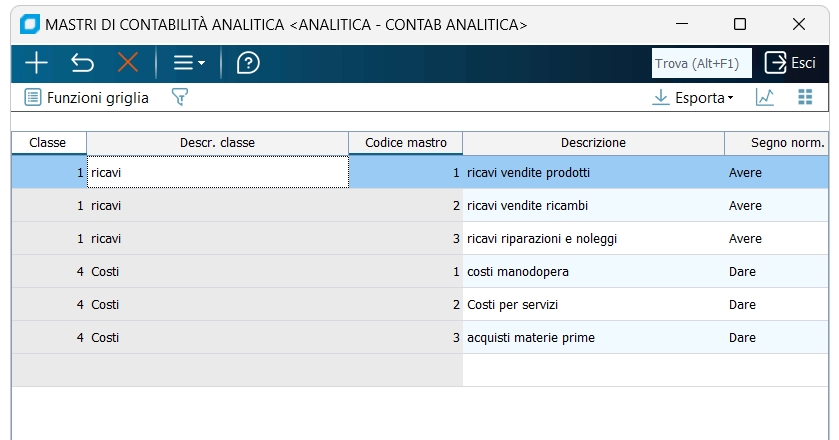 Prima di procedere con la codifica dei mastri di CA, occorre aver già predisposto la tabella delle classi di contabilità analitica (vedi parte della Guida dedicata a tabelle e archivi di contabilità).