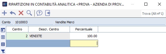Questa tabella non e' utilizzata nella ripartizione di CA quando c'e' un collegamento da CG. Quando si ha questa esigenza, mettere la ripartizione partendo dal sottoconto di CG, e usare la funzione del menu strumenti Ripartizione C.A.