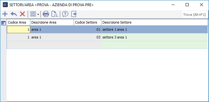 Questa tabella è denominata Settori/Area ma non va confusa con la tabella dei settori, che rappresenta una tabella di raggruppamento dei centri di CA.
