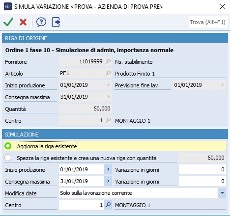 Simula variazione riga corrente: apre la maschera che permette di simulare una variazione sulla riga corrente. Sono disponibili più informazioni nel capitolo Simulazione variazioni