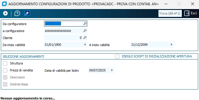 La voce di elaborazione "Struttura", se flaggata, permette di aggiornare la struttura del configuratore selezionato, nel caso questa sia stata modificata dopo la sua creazione.