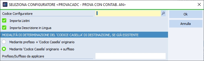 Attribuisce un Cod. Casella al configuratore nella sua globalità.