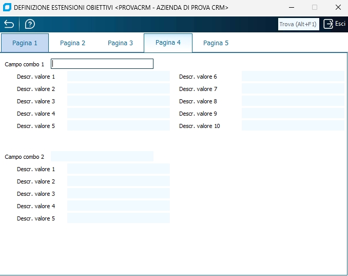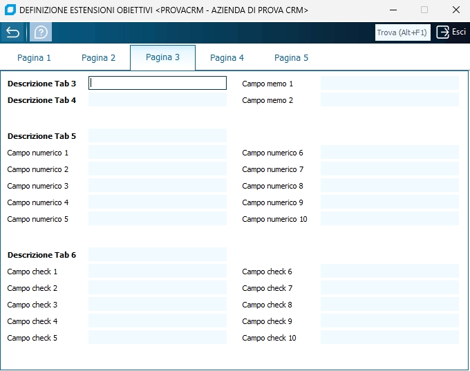 Con questo programma è permesso definire il significato dei vari campi facenti parte delle estensioni obbiettivi e leads.