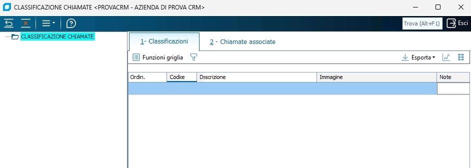 Il programma permette di definire una calassificazione fino a 5 livelli (con codice alfanumerico a 5 caratteri per ogni livello) da assegnare poi a ciascuna chiamata tecnica, per ogni classificazione è possibile indicare una descrizione, delle note e un'immagine visualizzabile una volta associata anche dall'apposita funzione del menù strumenti / sualizza immagine.
