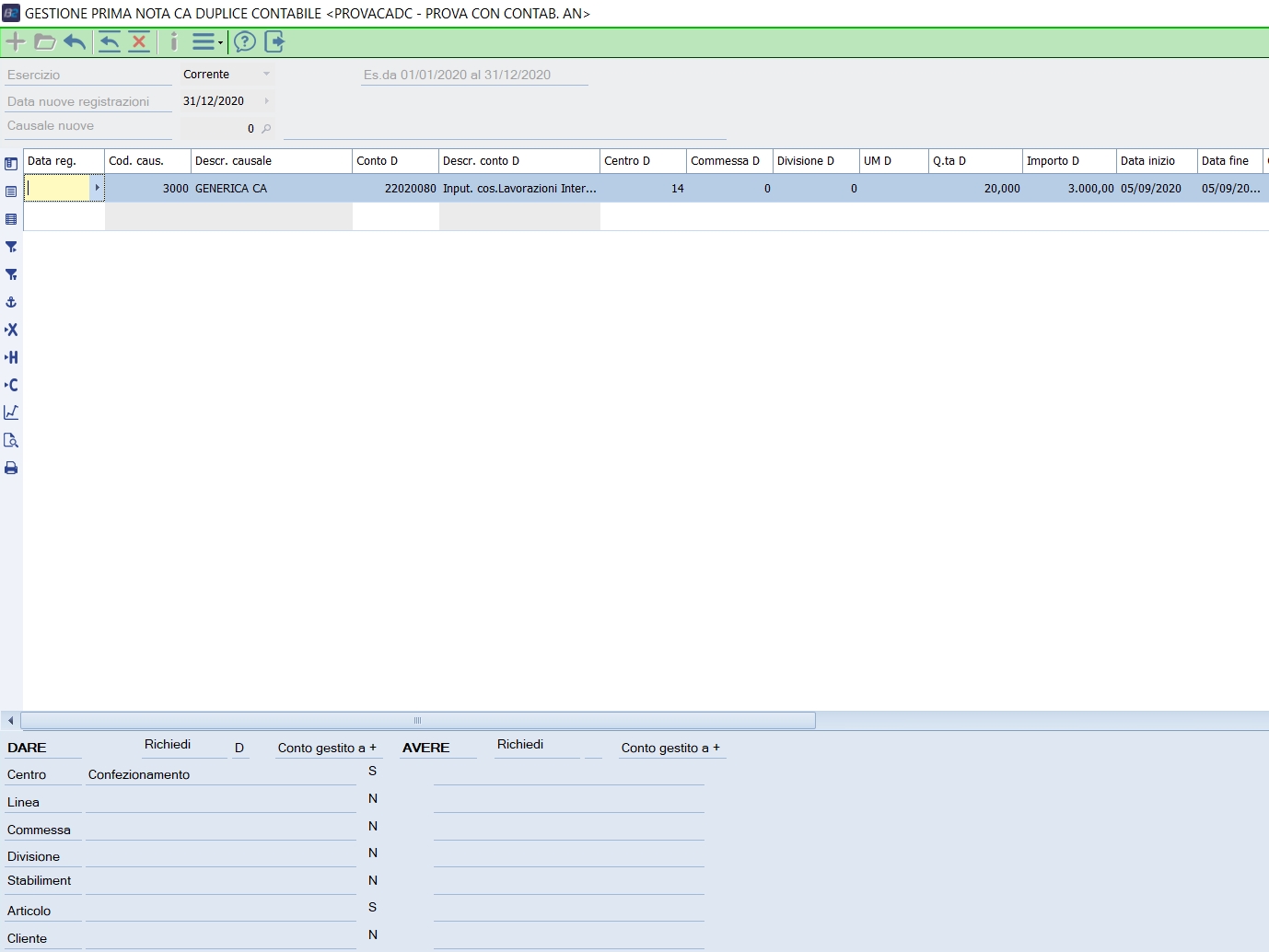 Gestione Prima Nota di Contabilità Analitica Duplice Contabile | |||