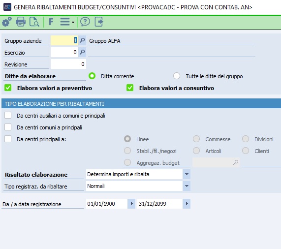 Genera Ribaltamenti Budget - Consuntivi