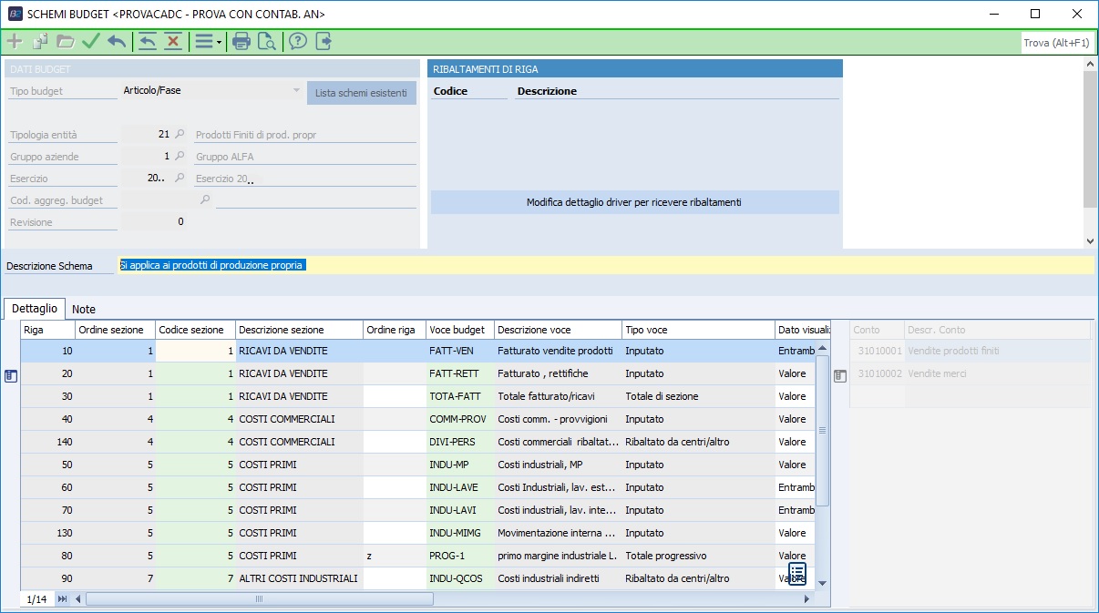 Il programma serve per procedere ad inserire i MODELLI/SCHEMI dei bugdet di CADC. Fare riferimento all'argomento La gestione della CADC.
