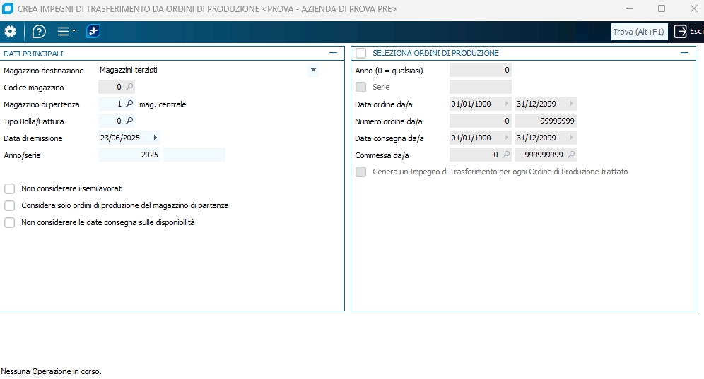 Crea Impegni di Trasferimento da Ordini di Produzione | |||