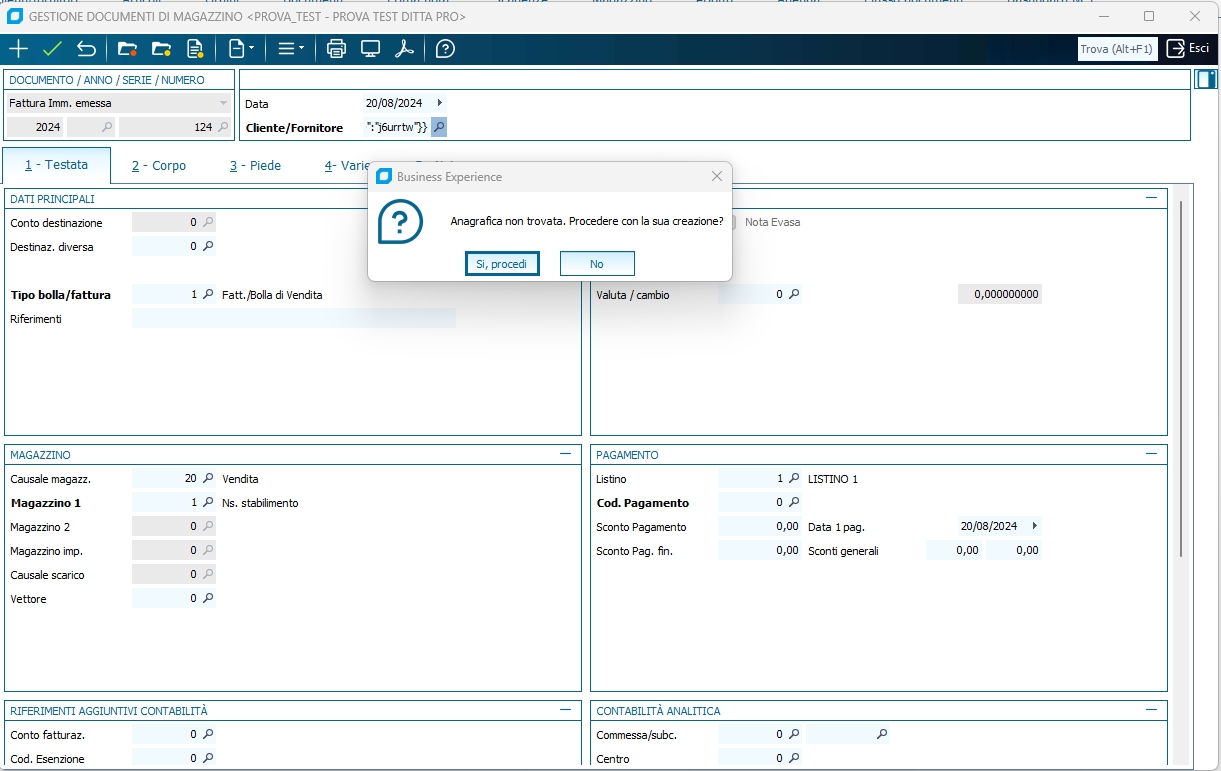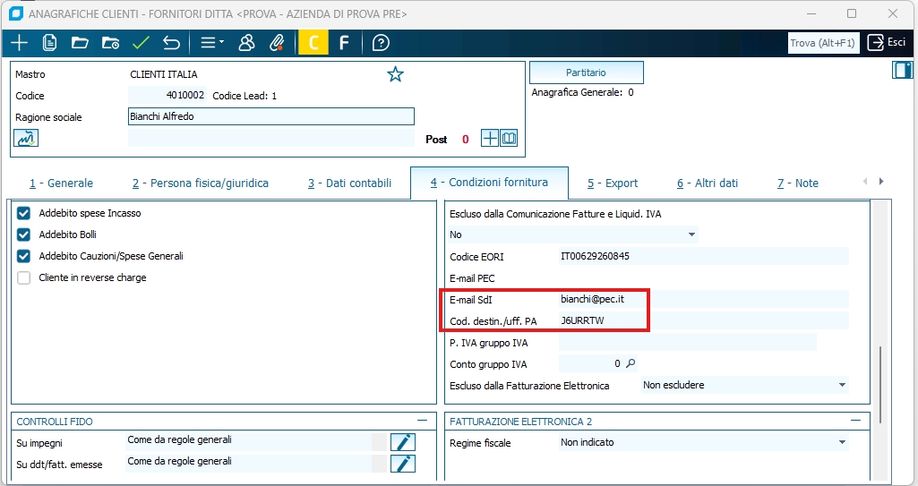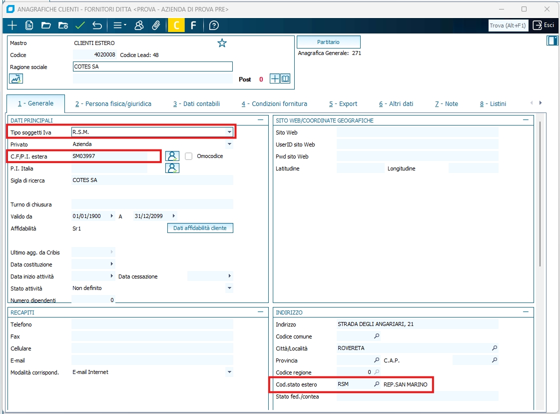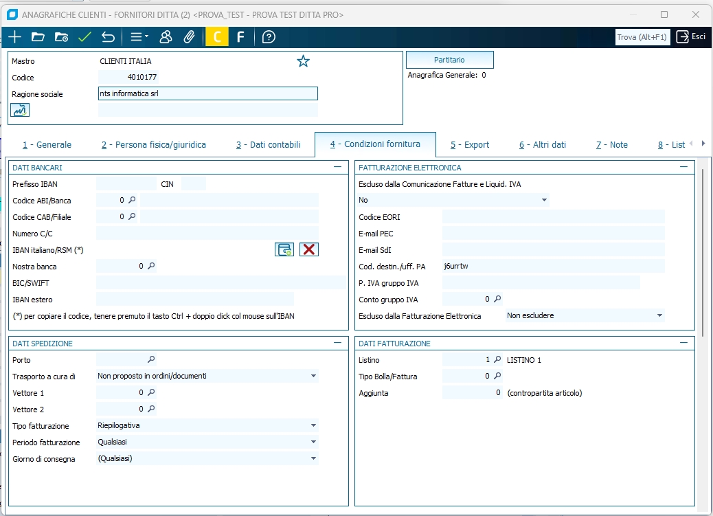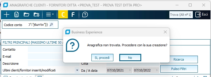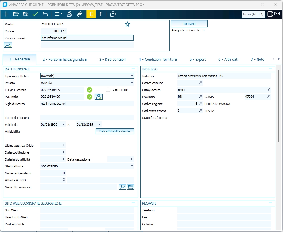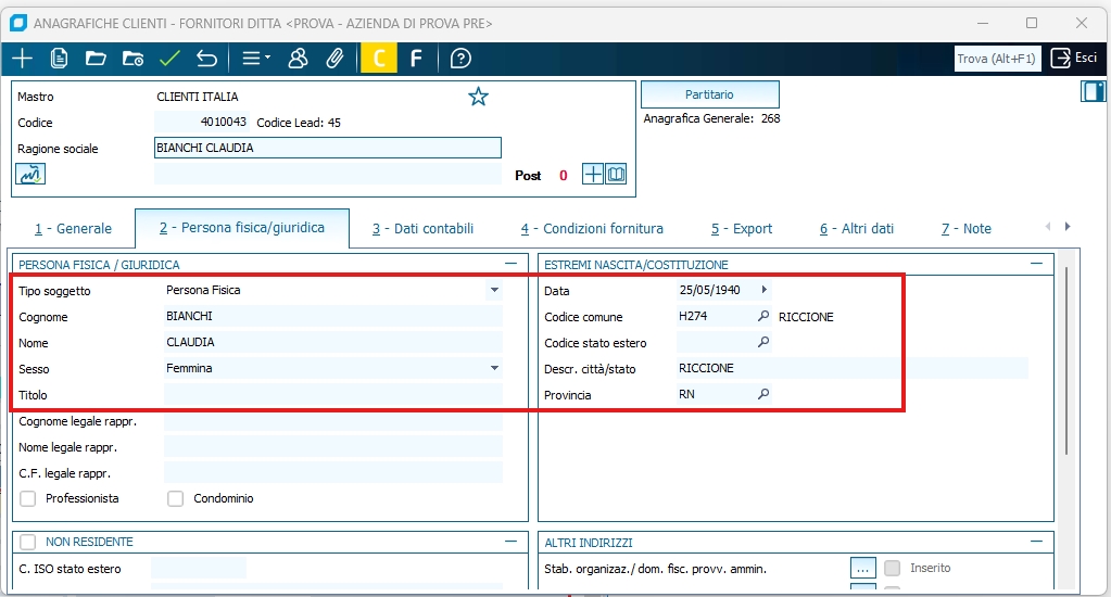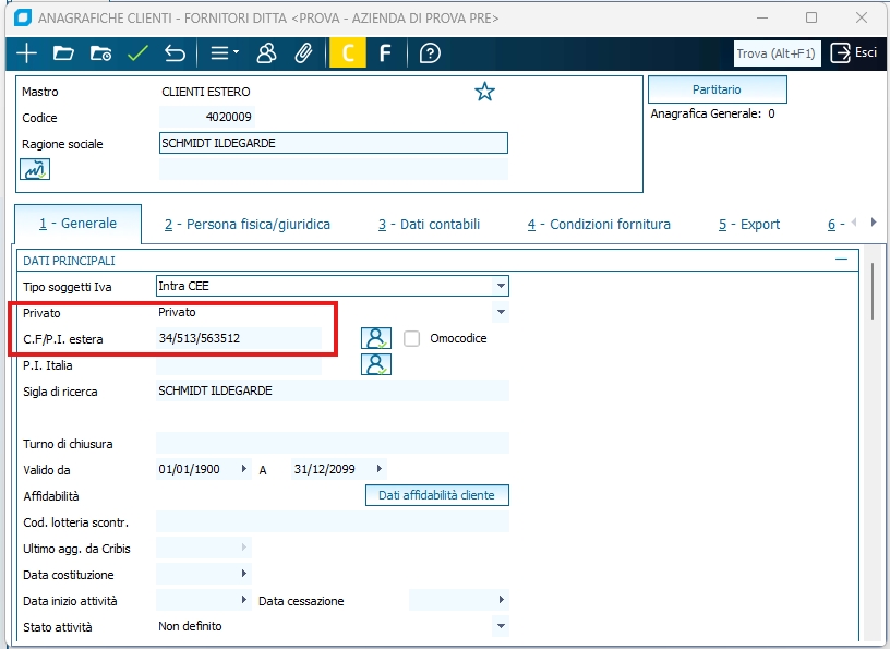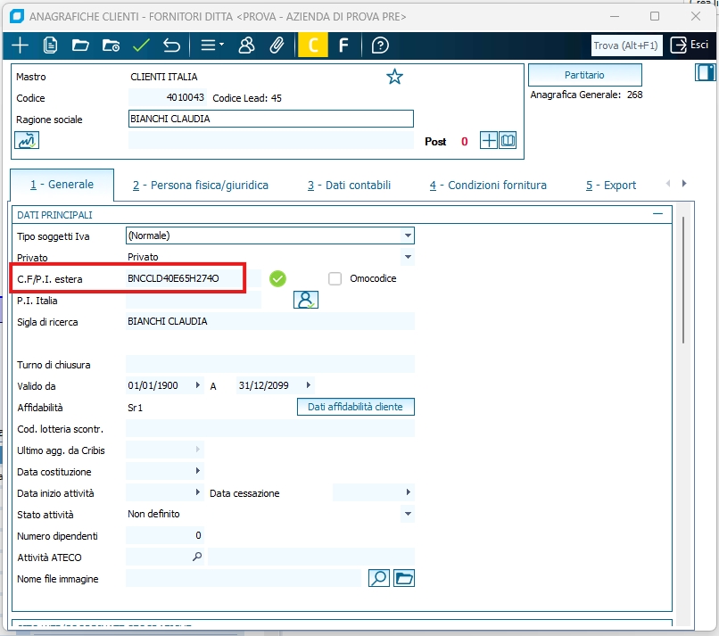 N.B. Per maggiori informazioni sulla codifica delle anagrafiche è possibile consultare la guida analitica di Business à Anagrafiche clienti/fornitori.