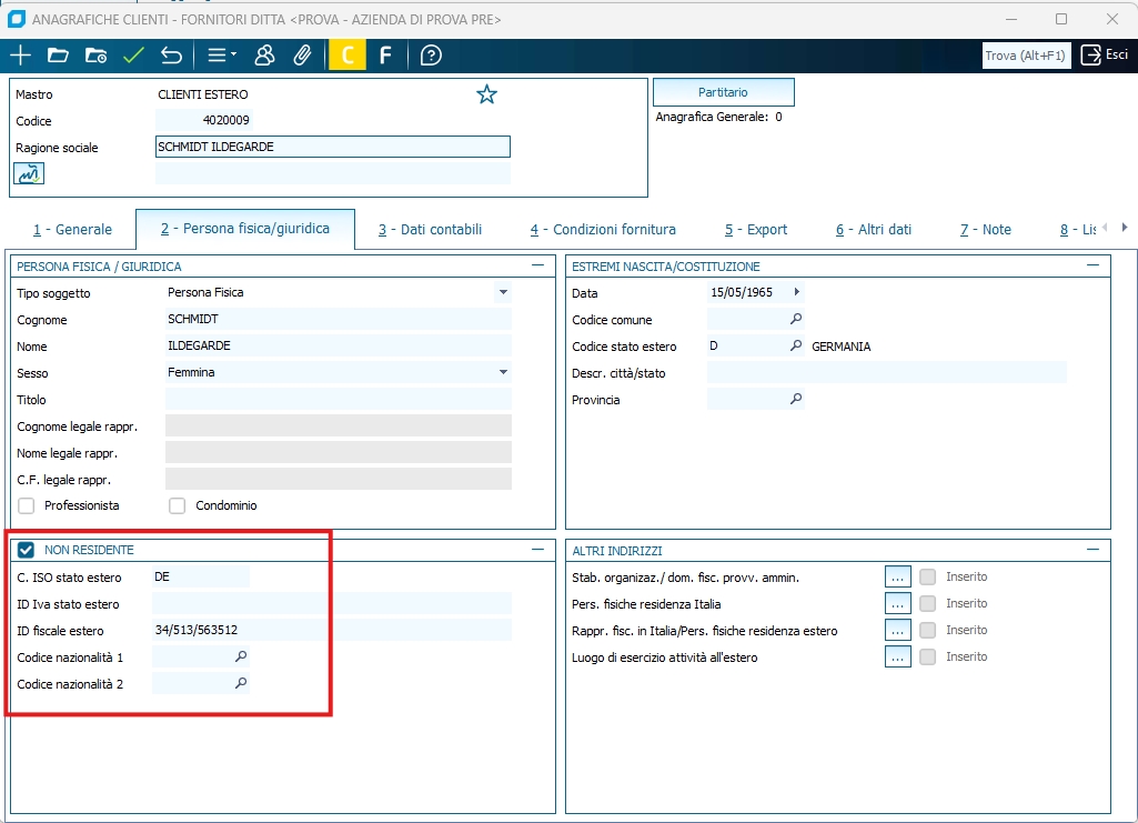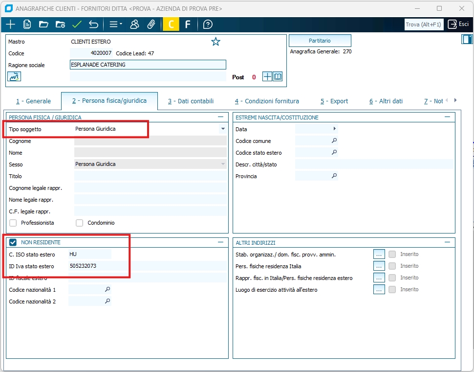 In alternativa è possibile inserire il codice ISO stato estero e l'identificativo IVA estero in Non residenti