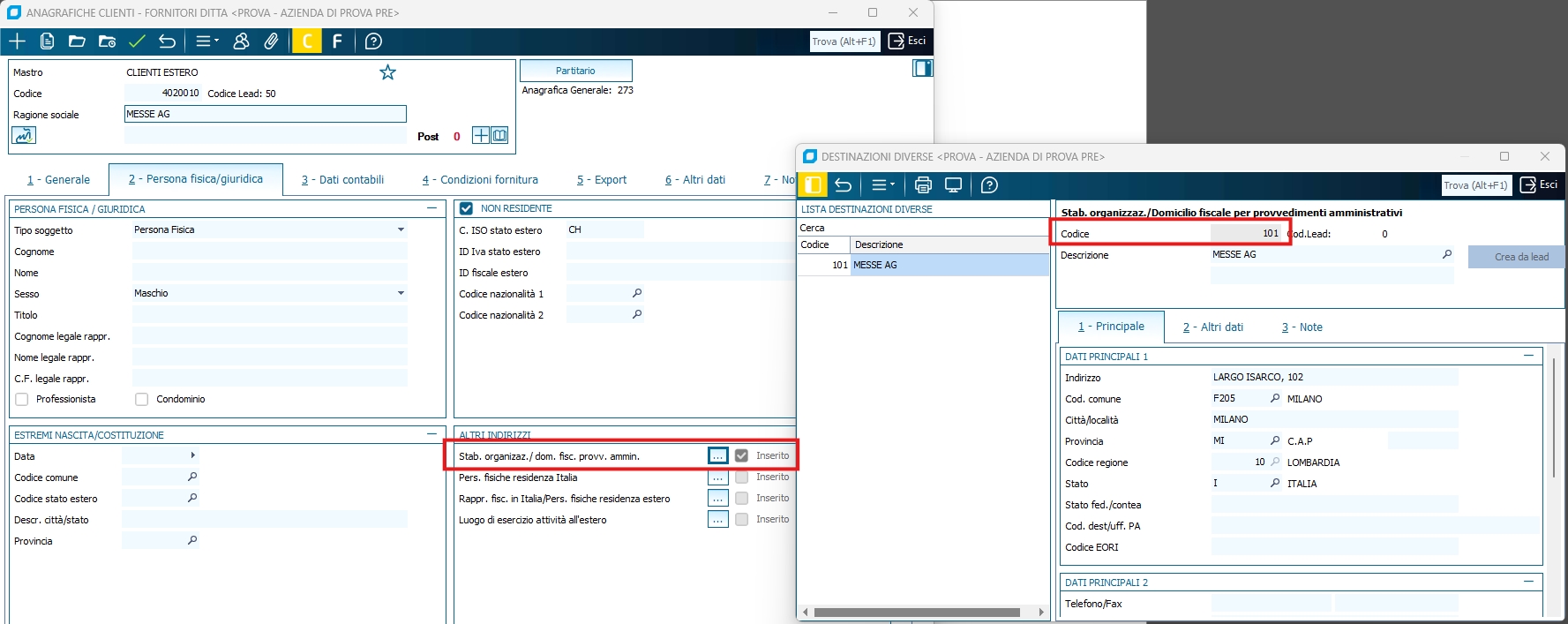 Gli operatori esteri identificati in Italia avranno nella maggior parte dei casi anche una Stabile organizzazione che andrà indicata tra le destinazioni diverse. Il codice destinazione per le stabili organizzazioni è quello indicato nella tabella Inizializzazione comuni\globali nel Tile Codice destinazione