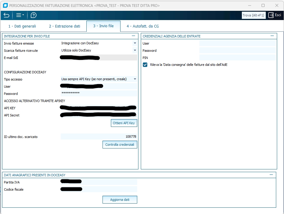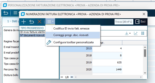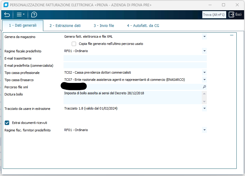 Tale voce viene abilitata solo se spuntato in Personalizzazione FE, il flag "estrai documenti ricevuti" (solo con modulo FE Plus)