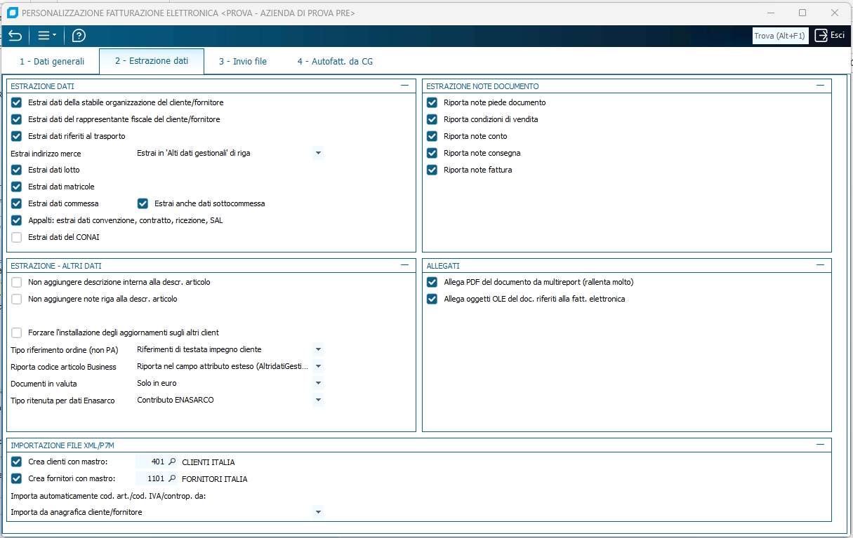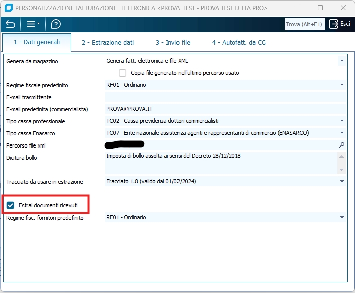 Per gestire questo tipo di operazioni all'interno della personalizzazione fatturazione elettronica è stato predisposto il check "Estrai documenti ricevuti" che deve essere attivato.