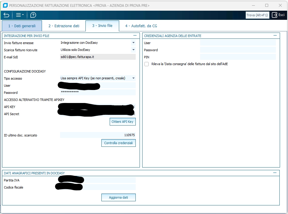 In particolare l'indirizzo pec e il cod.destin/Uff. PA sono necessari ai fini di consentire la trasmissione della fattura elettronica al destinatario.