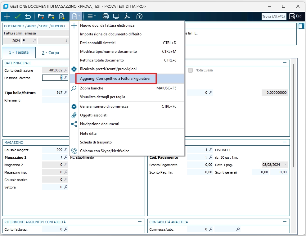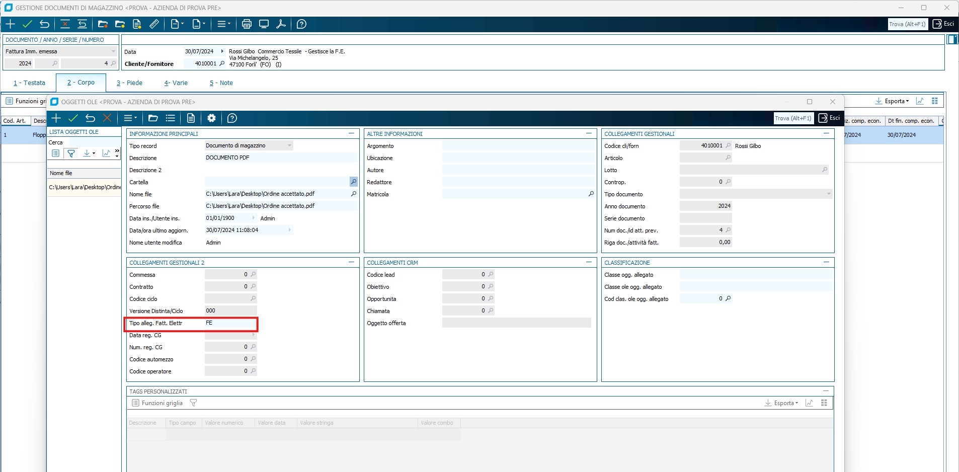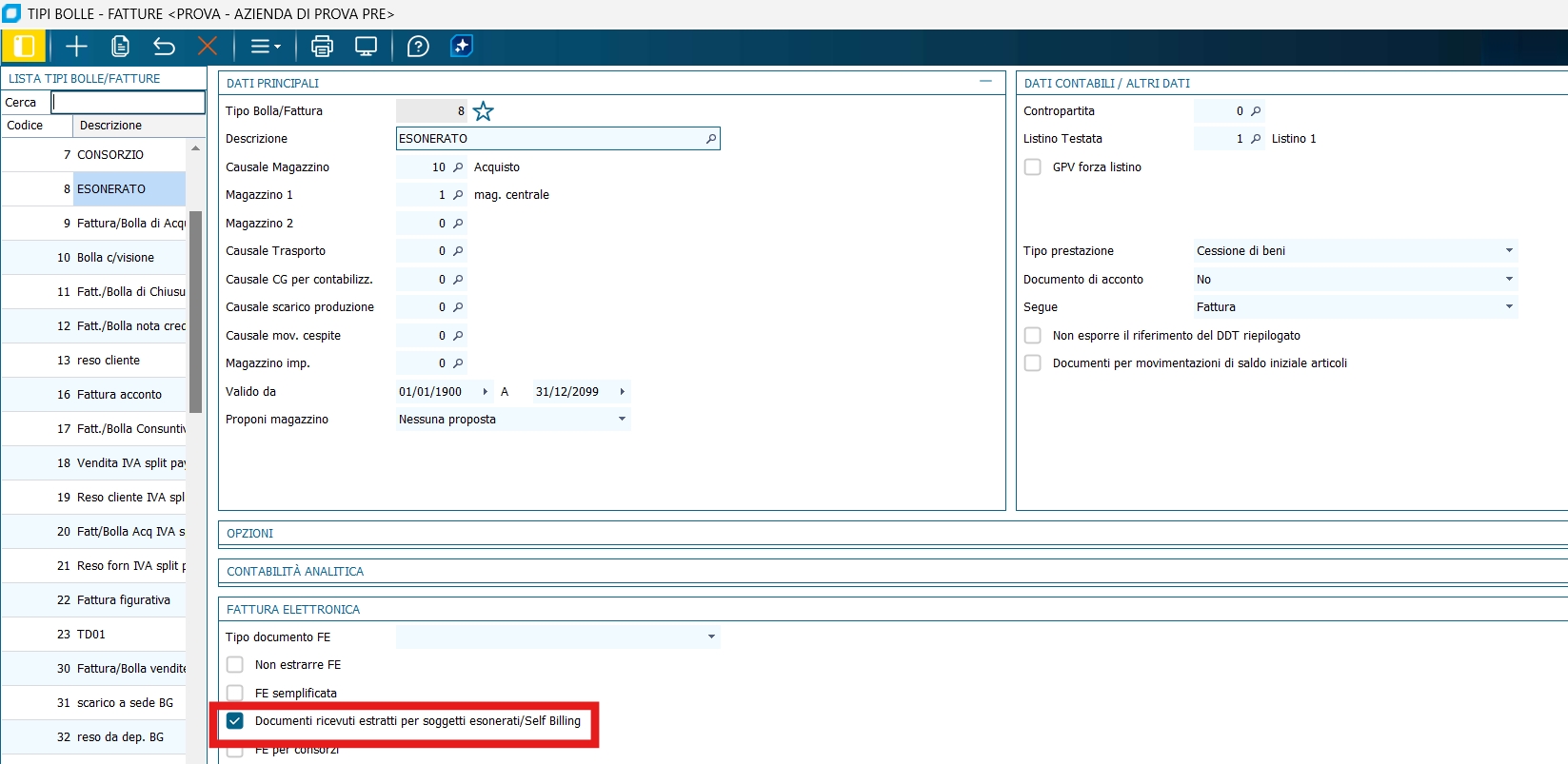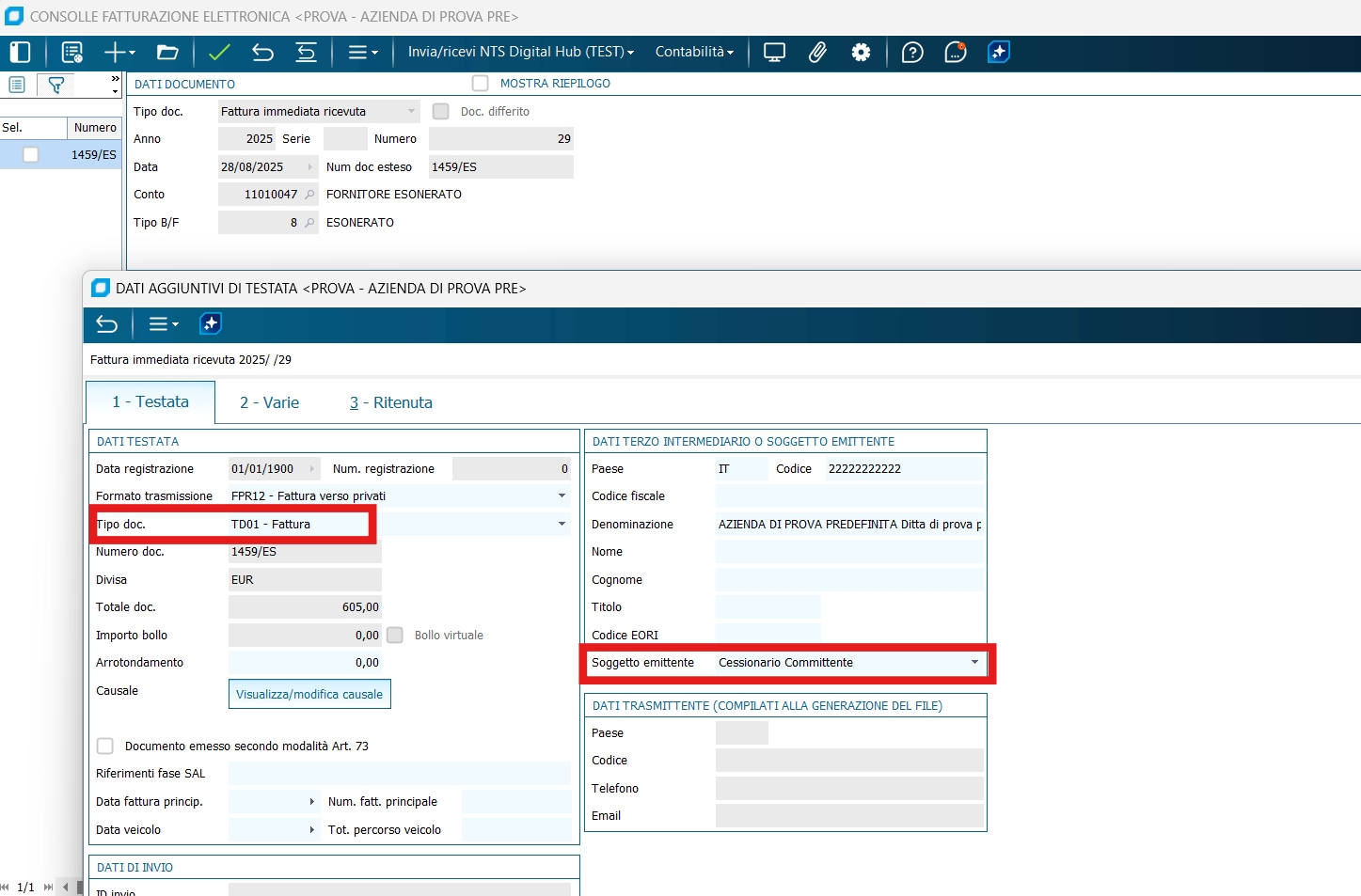 In questo modo il tipo documento verrà impostato come TD01 ed anche il campo Soggetto Emittente verrà impostato come "CC" negli altri dati documento in automatico.
