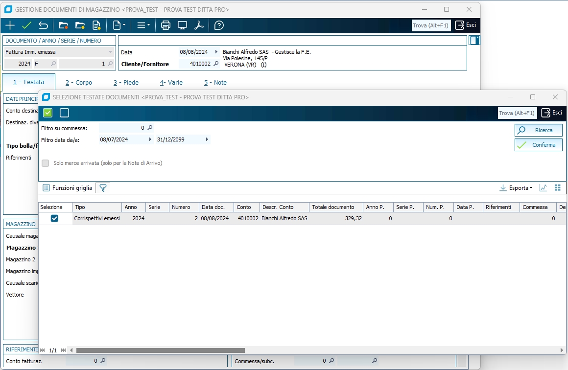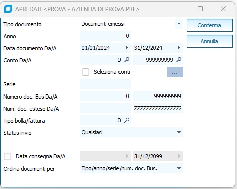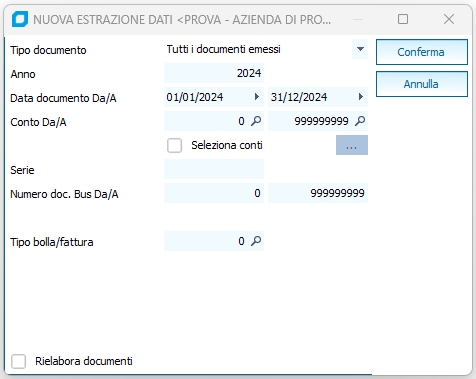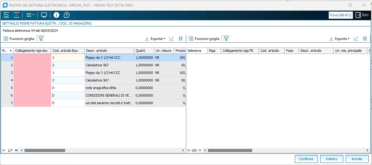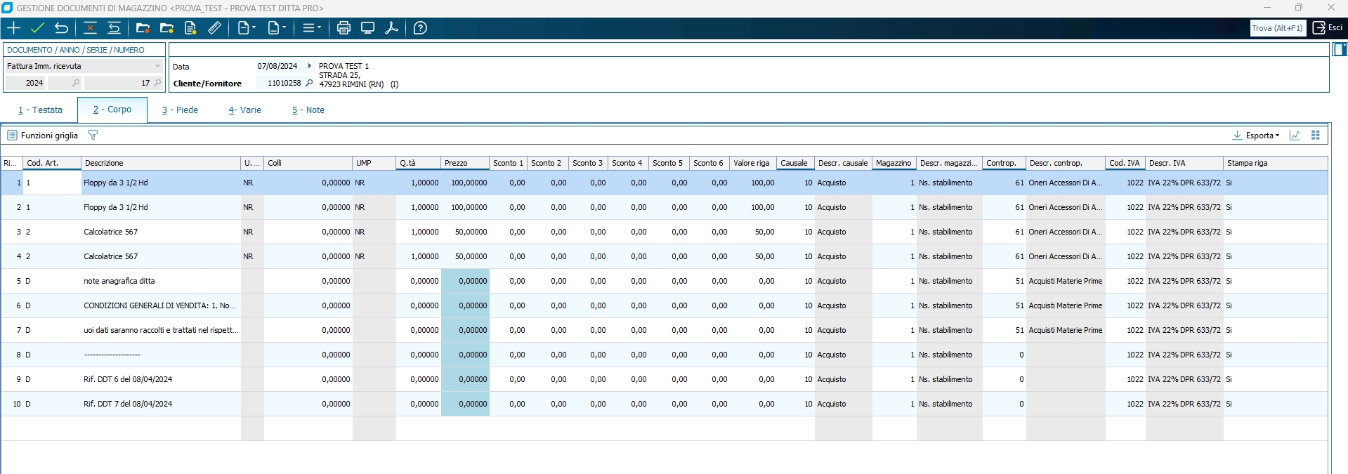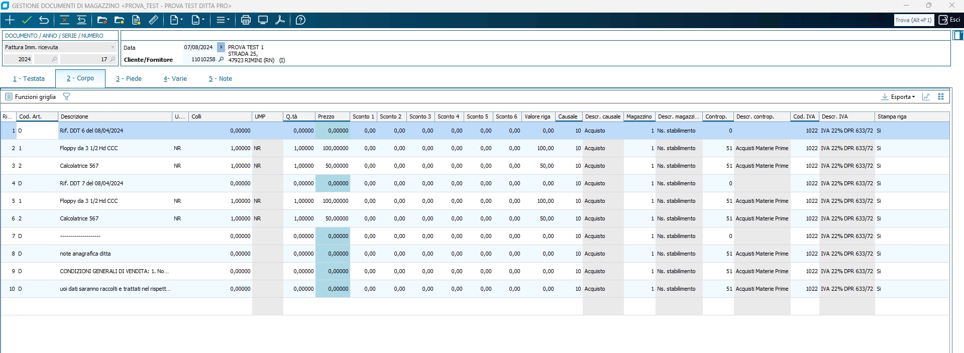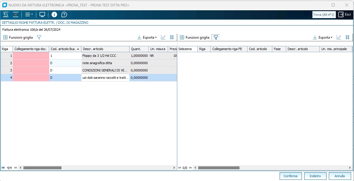 N.B fare attenzione a compilare il campo "partita documento ricevuto" nel piede del documento altrimenti la fattura non verrà estratta.